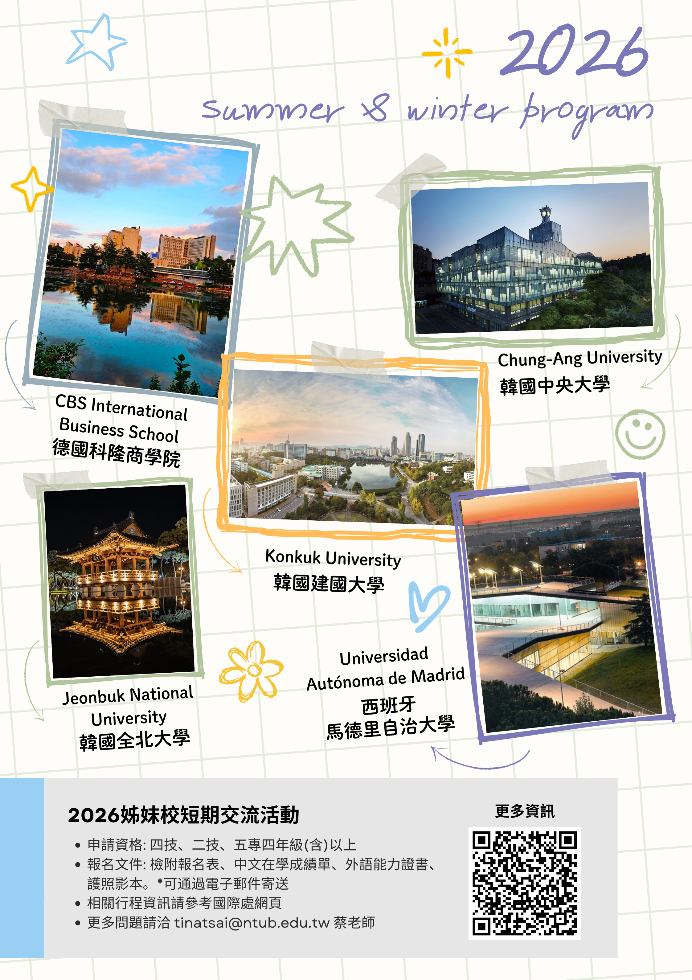 For further inquiries, please contact Ms. Tina Tsai at tinatsai@ntub.edu.tw