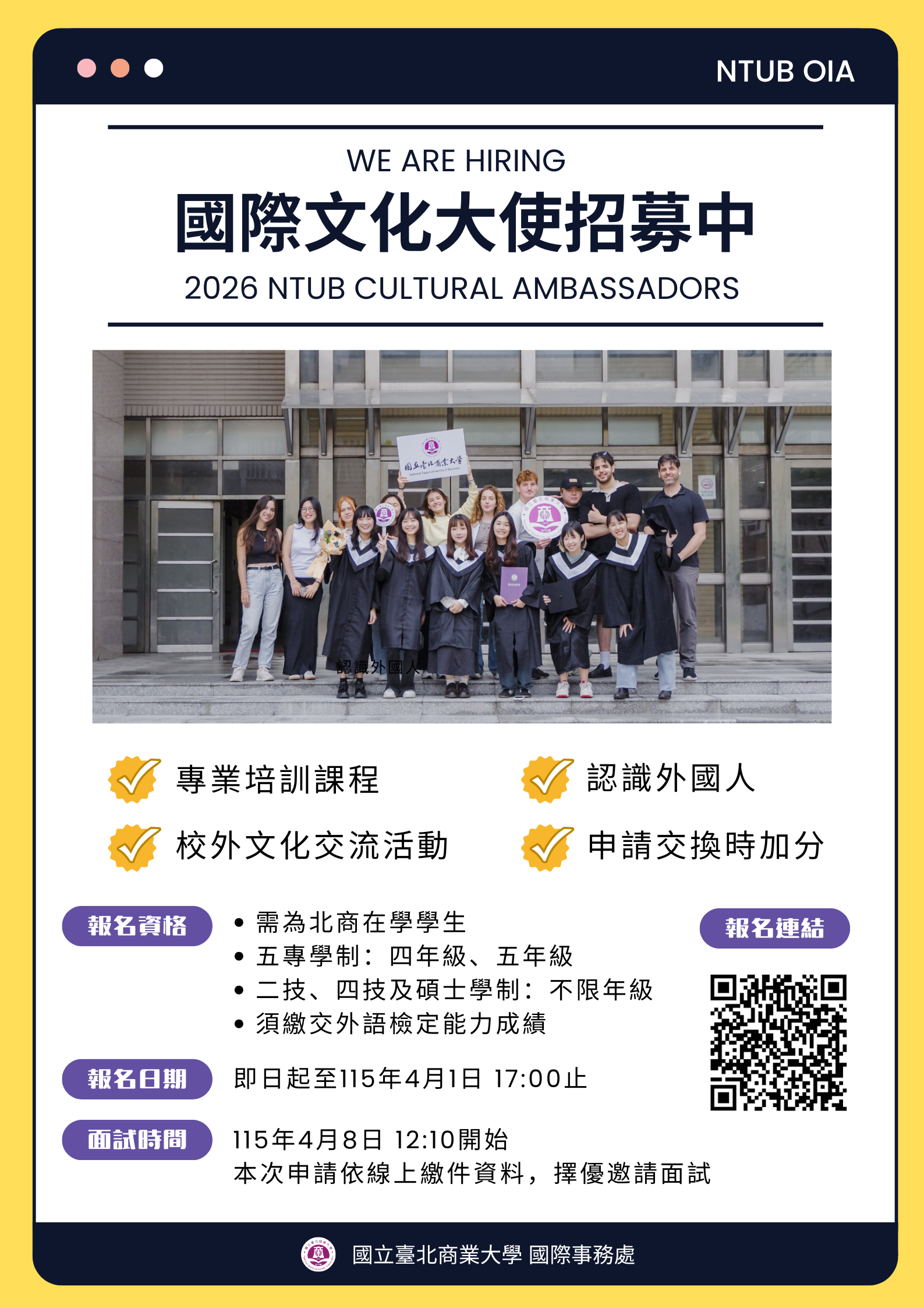 【活動】114-2國際文化大使 招募中